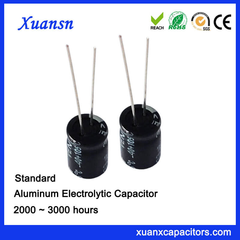 Standard radial aluminum electrolytic capacitors is suitable for charger, adapter, air conditioning and rear projection TV.