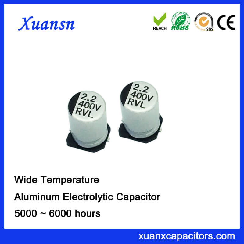 Chip 2.2UF 400V Aluminum Electrolytic Capacitor is available for high density surface mounting and reflow soldring, and it has high stability and reliability.