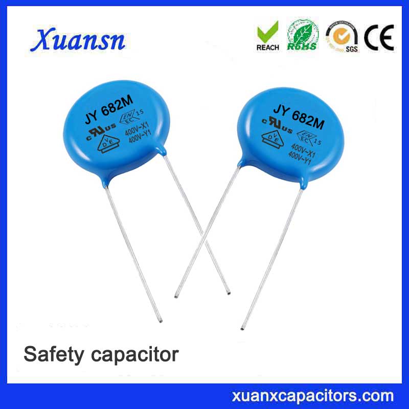 Y type 682M safety capacitor Y capacitors are mostly blue in appearance, and are generally marked with safety certification marks (such as UL, CQC, VED, etc.) and withstand voltage AC300V or AC400V. If you choose safety capacitors, you must look for xuansn. Manufacturers.