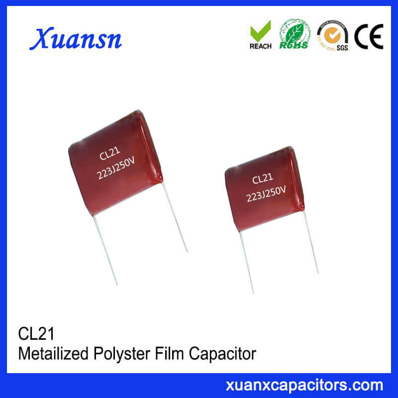 CL21 223J 250V Film Capacitor Metallized polyester film, non-inductive winding structure. It has the characteristics of wide capacity range, small size, light weight, good self-healing, long life and encapsulation of flame retardant epoxy powder.