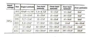 The data of SYFER small high-voltage and large-capacity laminated ceramic capacitors are shown in Table 3.18 and Table 3.19.