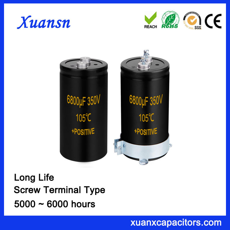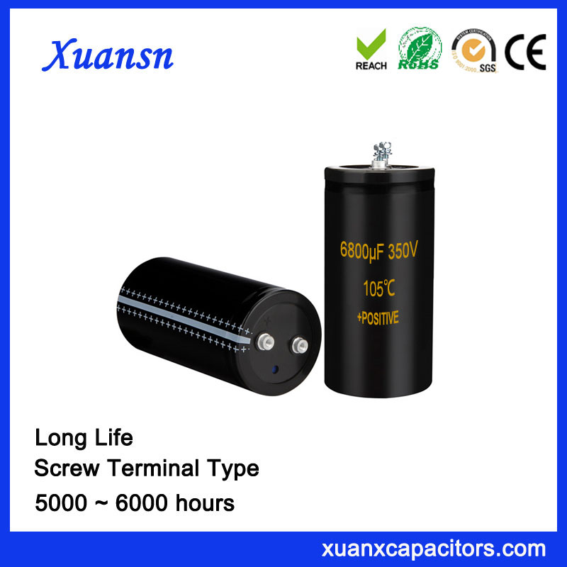 Xuansn manufacturing and supply of 6000 hours 105℃ High Quality Screw Terminal Type Capacitor 6800UF 350V.