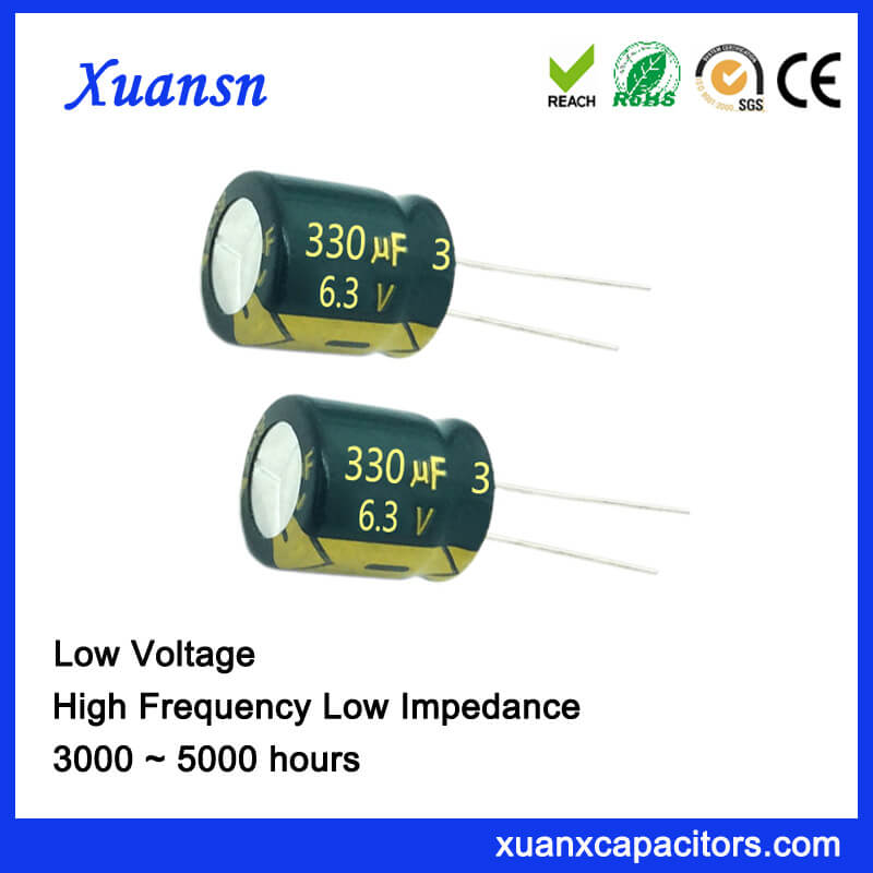 Low Voltage Capacitor 330UF 6.3V High Frequency 5000Hours is our High frequency and low impedance electrolytic capacitor series.