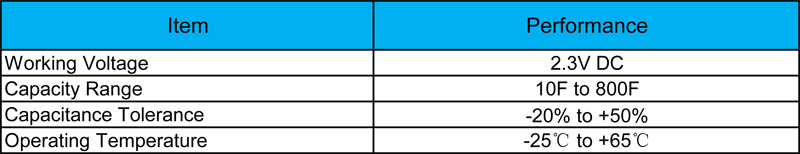 Specification of 2.3v supper capacitor