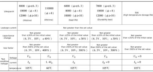 Due to different storage conditions and usage conditions, some electrolytic capacitor data also include storage life parameters at high temperature without bias voltage.