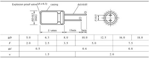 Figure 1-1 Outline diagram of CD03 series general-purpose aluminum electrolytic capacitors