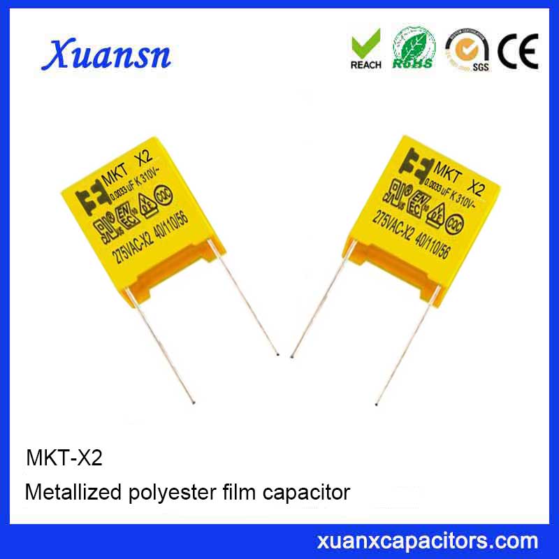 X2 Film Capacitor 332K Is a Metalized Polyester Film Capacitor, packaged in a plastic case, with good size consistency.