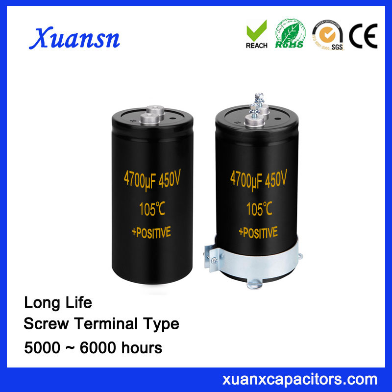 Xuansn manufacturing and supply of 6000 hours 105℃ Capacitor Screw Terminal Type 4700UF 450V.